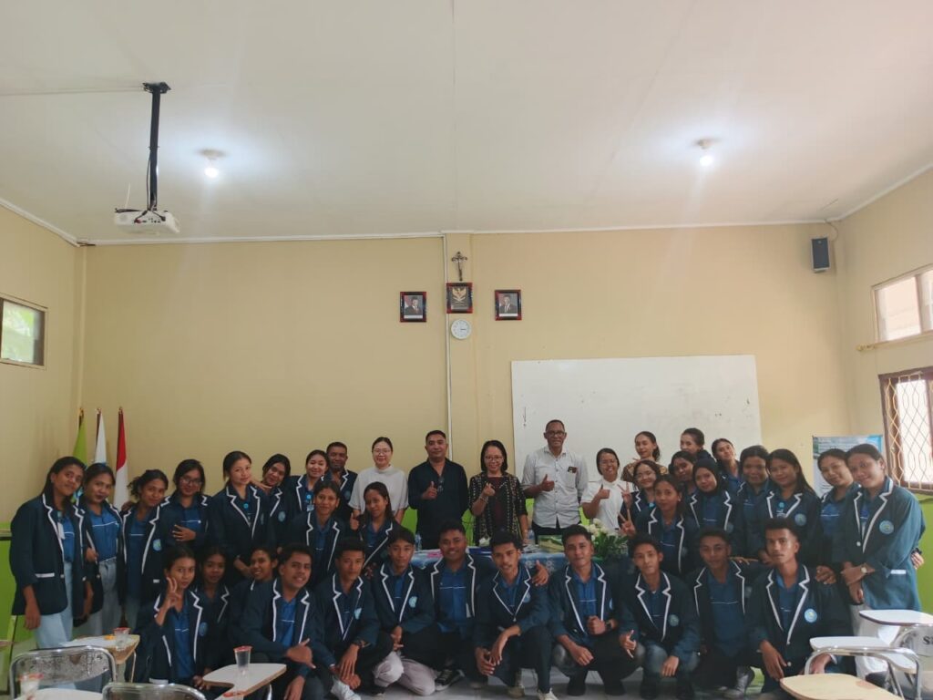 Maumere, Kegiatan ELMA – Mengenakan Jas berwarnabiru dongker dengan garis putih di tepi jas yang disetrika rapi, Natalia Tati mahasiswi di ...