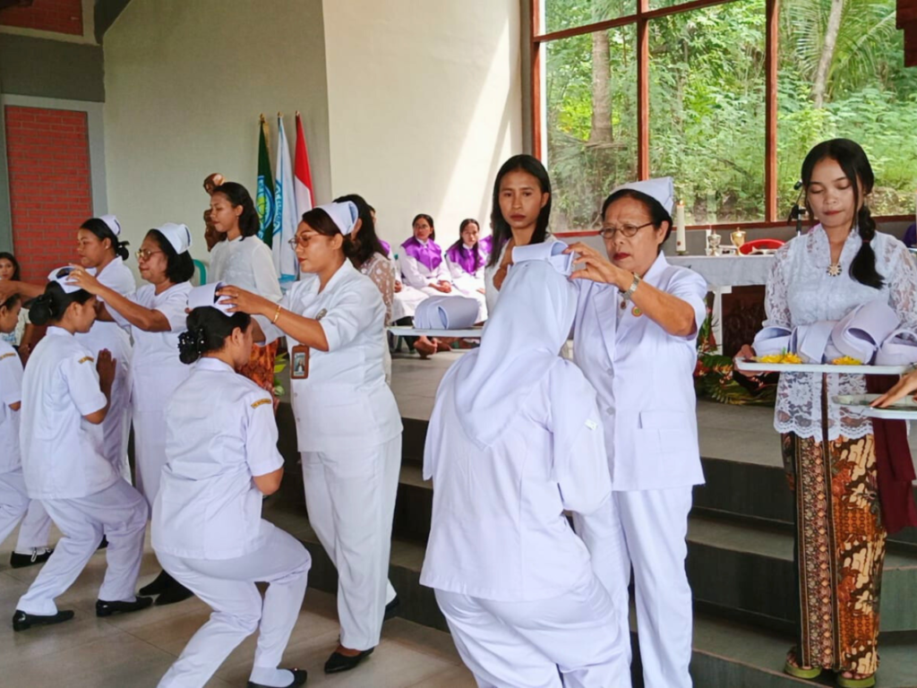 “Capping day itu sudah biasa, tapi beda rasa. Menjadi perawat adalah sebuah panggilan suci. Kalian tidak hanya dipanggil untuk merawat tubuh yang sakit, tetapi juga merawat hati yang terluka,” ujar RD. Gabriel Mane. Ia juga merujuk pada sosok Abraham dalam Kitab Suci sebagai teladan bagi setiap orang yang menjalankan panggilan Tuhan dengan cara setia mendengarkan sabda-Nya. “Hari ini kalian bertransformasi. Ingatlah, tiada keberhasilan sejati yang lahir tanpa perjuangan dan pengorbanan,” tambahnya.
