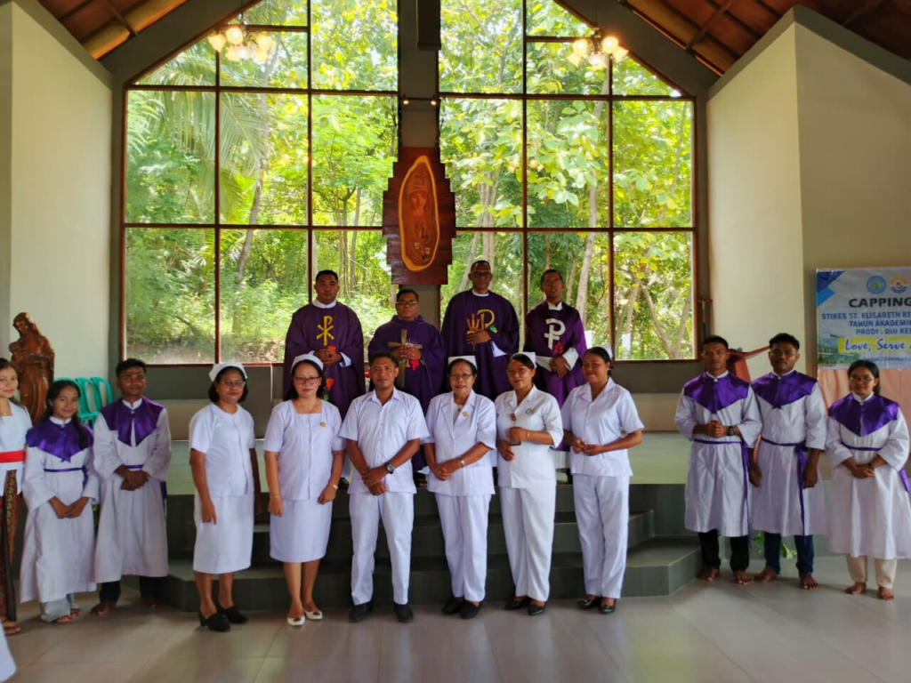 MAUMERE, BERITA ELMA – Puncak Caping Day STIKes St. Elisabeth Keuskupan Maumere berlangsung khidmat dalam perayaan Misa Kudus di Rumah Retret Mageria, Minggu (1/3/2026). Sebanyak 121 mahasiswa Program Studi D3 Keperawatan resmi menjalani penyematan capping (topi perawat) dan bunga dada. Misa yang mengusung tema “Love, Serve, and Give” ini dipimpin oleh RP. Marthen Wela, O.Carm, dan dihadiri oleh seluruh fungsionaris kampus.